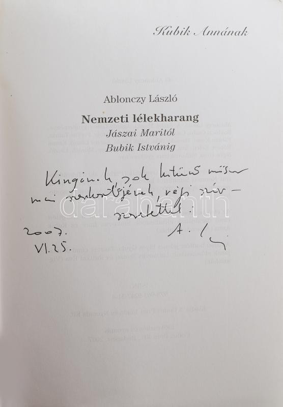Ablonczy László: Nemzeti lélekharang. Jászai Maritól Bubik Istvánig. D... https://www.darabanth.com/hu/510-Gyorsarveres/510.0/Konyvek/Konyvek-Epiteszet-muveszet~771/Ablonczy-Laszlo-Nemzeti-lelekharang-Jaszai-Maritol-Bubik-Istvanig-DEDIKALT-Bp-2007-Cod~II3421320