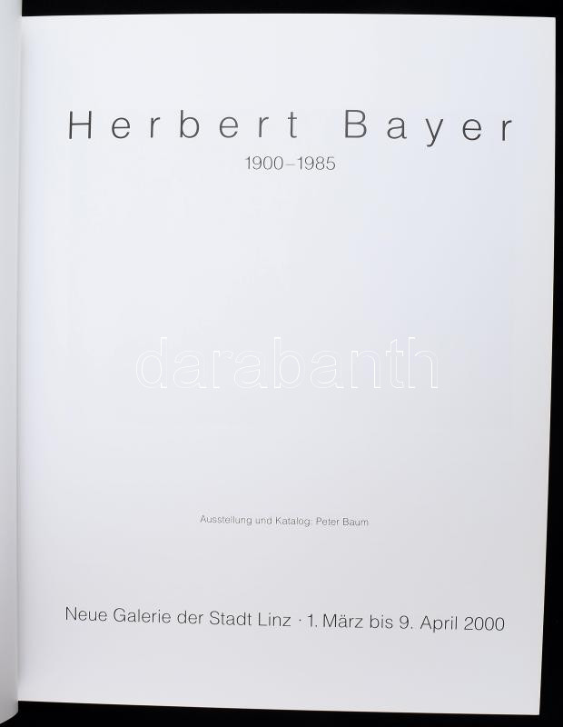 Hebrert Bayer 1900-1985. Ausstellung und Katalog: Peter Baum. Linz, 2000, Neue Galerie der Stadt Linz, 88 p.Német nyelven. Gazdag képanyaggal illusztrált. Kiadói papírkötés.