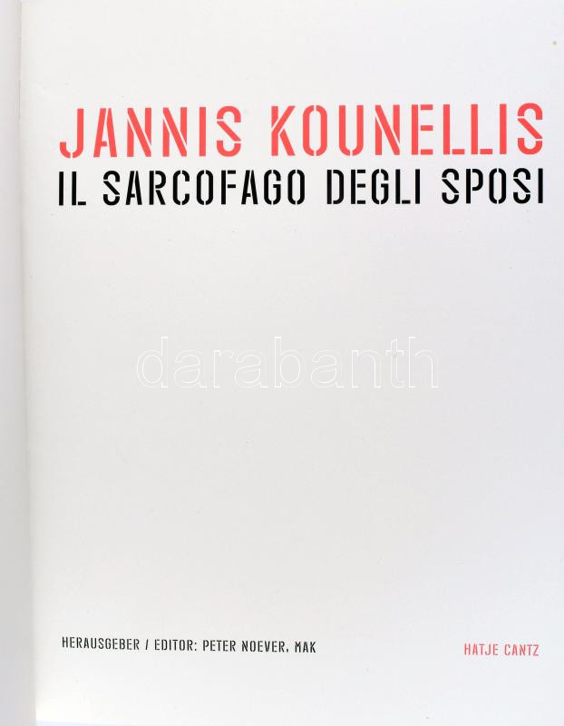 Peter Noever: Jannis Kounellis. Il sarcofago degli sposi. Wien, 1999, Hatje Cantz Verlag. Német nyelven. Gazdag képanyaggal illusztrált. Kiadói papírkötés.