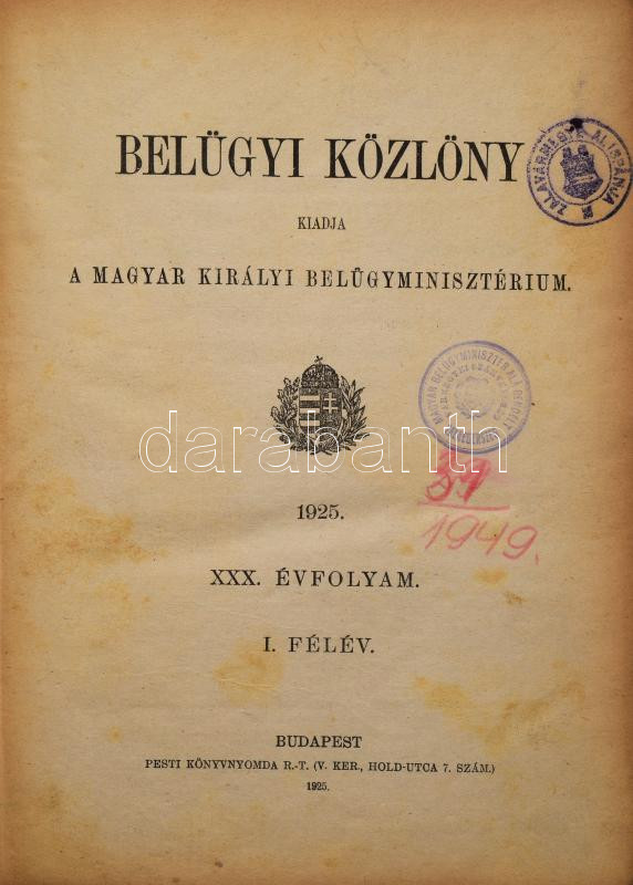 Bp., 1923-1928., Pesti Könyvnyomda Rt. - Fővárosi Nyomda. Félvászon-kötésekben, kopott borítókkal, közte sérült gerinccel is, részben foltos lapokkal, bélyegzésekkel, bejelölésekkel.