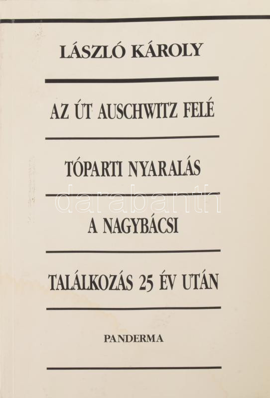 László Károly: Az út Auschwitz felé. / Tóparti nyaralás. / A nagybácsi. / Találkozás 25 év után. Bp., 1997, Panderma. Kiadói papírkötés, jó állapotban.