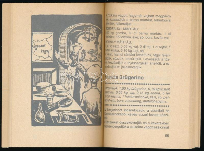 Leírás: Bölcsházy Sándor: Birka szakácskönyv. Minikönyv! Veszprém, 1987,Pannon Nyomda, 102 p. Fekete-fehér fotókkal illusztrált. Kiadói papírkötés, kissé kopott borítóval, 9x6 cm