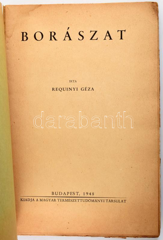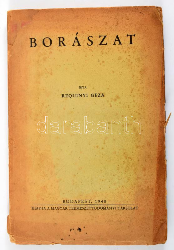 Requinyi Géza: Borászat. Bp., 1948., Kir. M. Természettudományi Társul... https://www.darabanth.com/hu/510-Gyorsarveres/510.0/Konyvek/Konyvek-Konyha-es-kert~772/Requinyi-Geza-Boraszat-Bp-1948-Kir-M-Termeszettudomanyi-Tarsulat-234-p-Szovegkozti-~II3450815