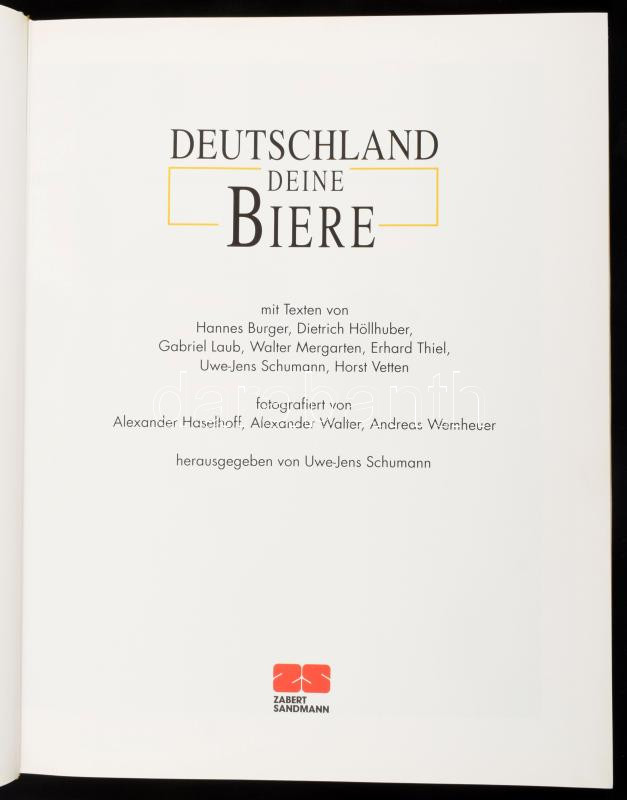 Deutschland Deine Biere. Hrsg. von Uwe-Jens Schumann. München, 1993, Zabert Sandmann. Német nyelven. Gazdag képanyaggal illusztrált. Kiadói kartonált papÃrkötés, kiadói papÃr védÅ‘borÃtóban.;