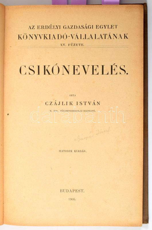 Kolligátum: Czáljik István: Csikónevelés. Bp. 1905. 35p. 6. kiadás.