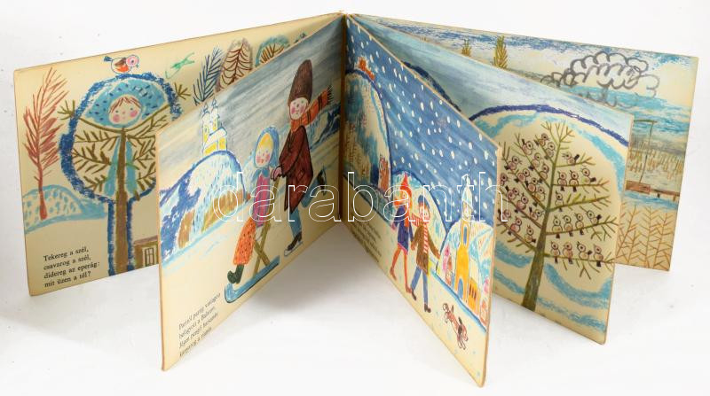 Leírás: Weöres Sándor: Télország. Reich Károly rajzaival. 1972, Móra. Leporelló könyv, kissé kopottas állapotban.
