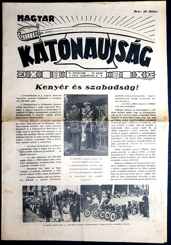 [Folyóirat] Magyar Katonaújság. Szerkeszti: Rózsás János. Megjelenik hetenként. IV. évfolyam, 31. szám. (1941. augusztus 2.)
