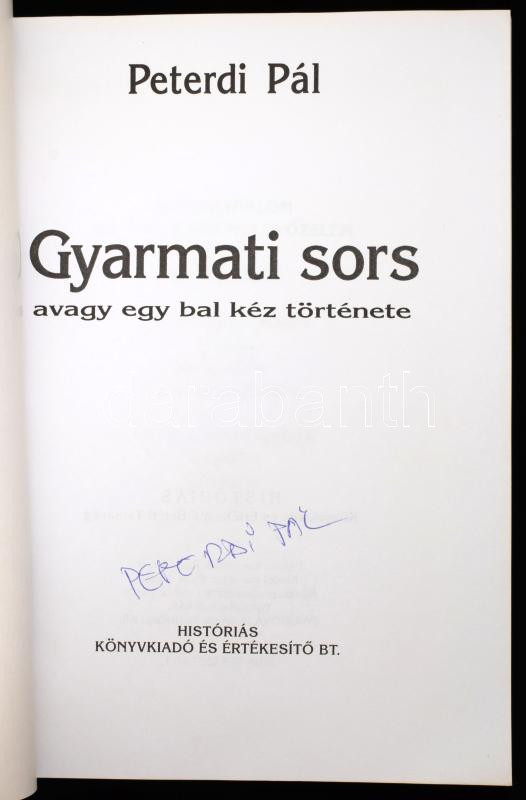 Peterdi Pál: Gyarmati sors, avagy egy bal kéz története. A szerzÅ‘, Peterdi Pál (1925-2000) sportoló, edzÅ‘, sportújságÃró, humorista, Ãró által aláÃrt példány. [Bp.], 1996, Históriás. ElsÅ‘ kiadás. Kiadói papÃrkötés.