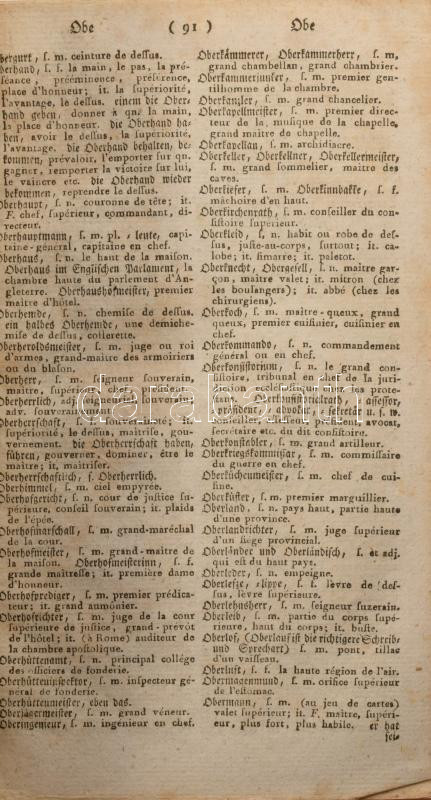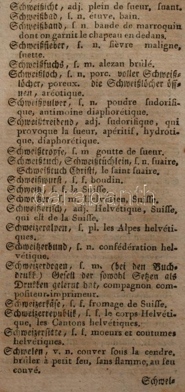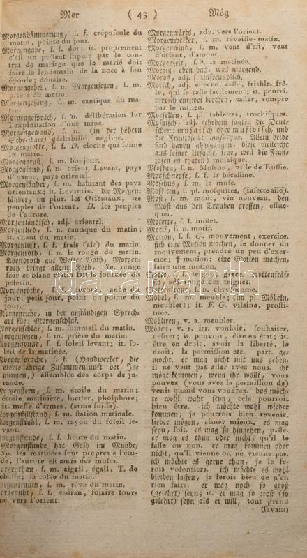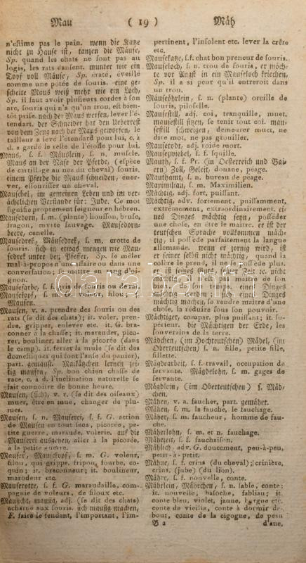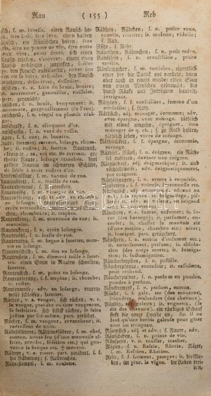 Dictionnaire françois-allemand et allemand-françois, á l'usage des deux nations ... Tome IV. A' Brunsvic 1799: chez Fréderic Vieweg, 1799. - 620p. Korabeli félbőr kötésben