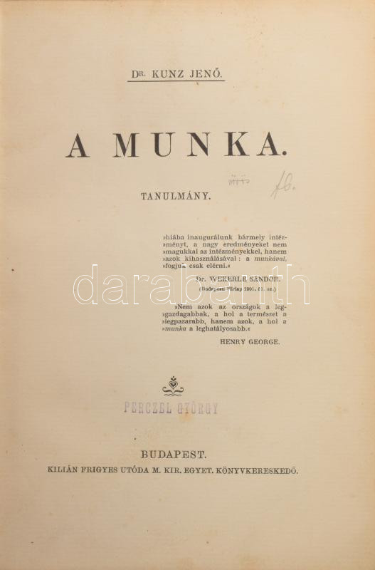 Kunz Jenő, dr.: A munka. Tanulmány.