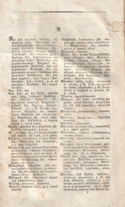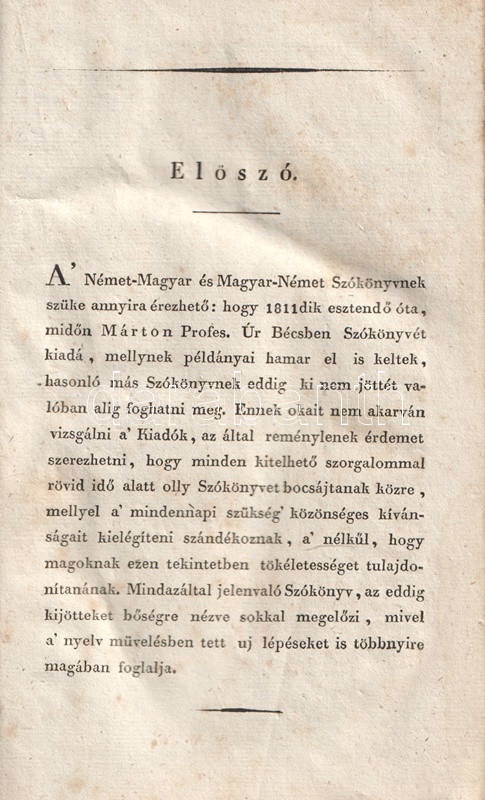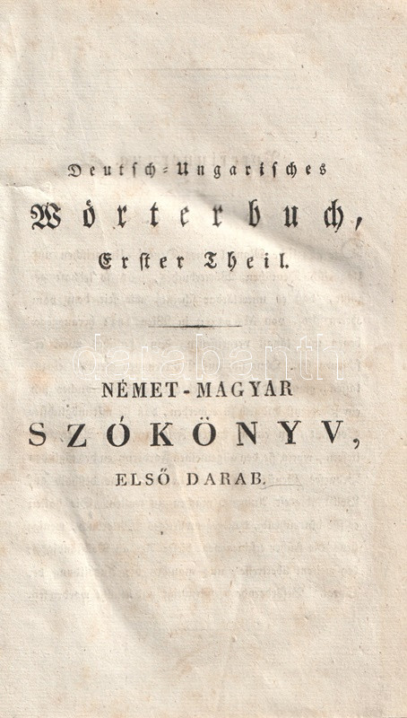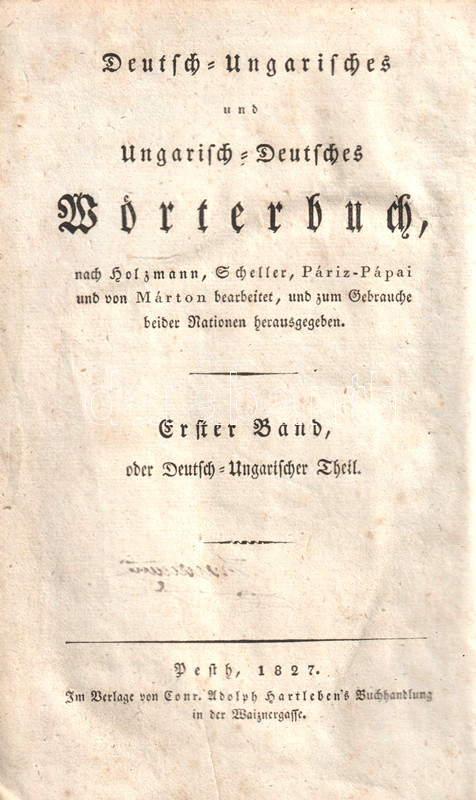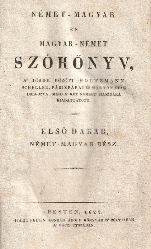 Német-magyar és magyar-német Szókönyv. A' többek között Holtzmann, Scheller, Páriz Pápai és Márton után dolgozva, mind a' két nemzet' hasznára kiadattatott. Első darab: Német-magyar rész. [Teljes német-magyar szótár.]