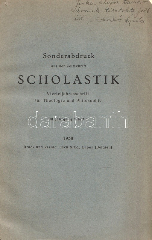 (Sonderabdruck aus der Zeitschrift Scholastik Vierteljahresschrift für Theologie und Philosophie XIII. Jahrgang, Heft 1.)