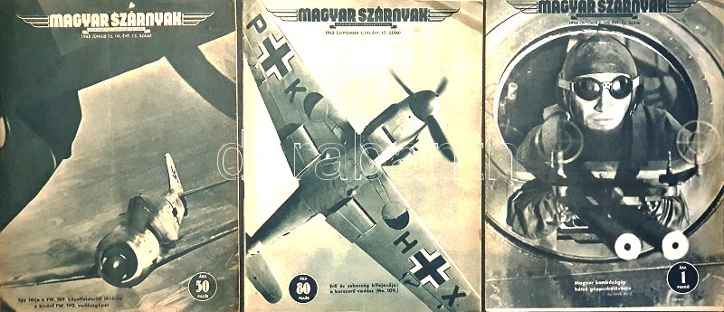 [Folyóirat] Magyar Szárnyak. Repülésügyi folyóirat. Szerkeszti: Jánosy István. Megjelenik havonta kétszer. VI. évfolyam, 12., 17. szám, VII. évfolyam, 19. szám. [1943. június 15. - 1944. október 1.]