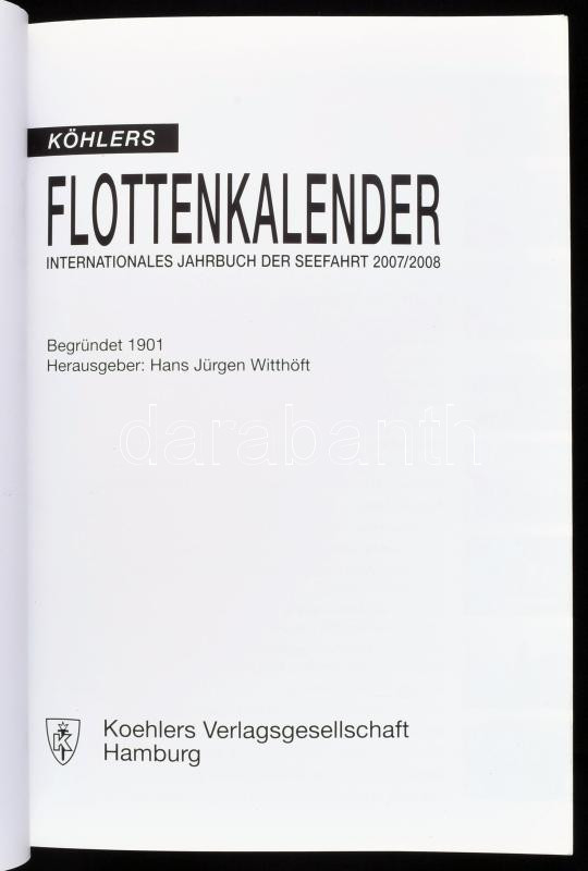 Köhlers Flottenkalender 2007/2008. Internationales Jahrbuch der Seefah... https://www.darabanth.com/hu/510-Gyorsarveres/510.0/Konyvek/Konyvek-Technika~777/Kohlers-Flottenkalender-20072008-Internationales-Jahrbuch-der-Seefahrt-Hamburg-2007-Koehlers-V~II3452121