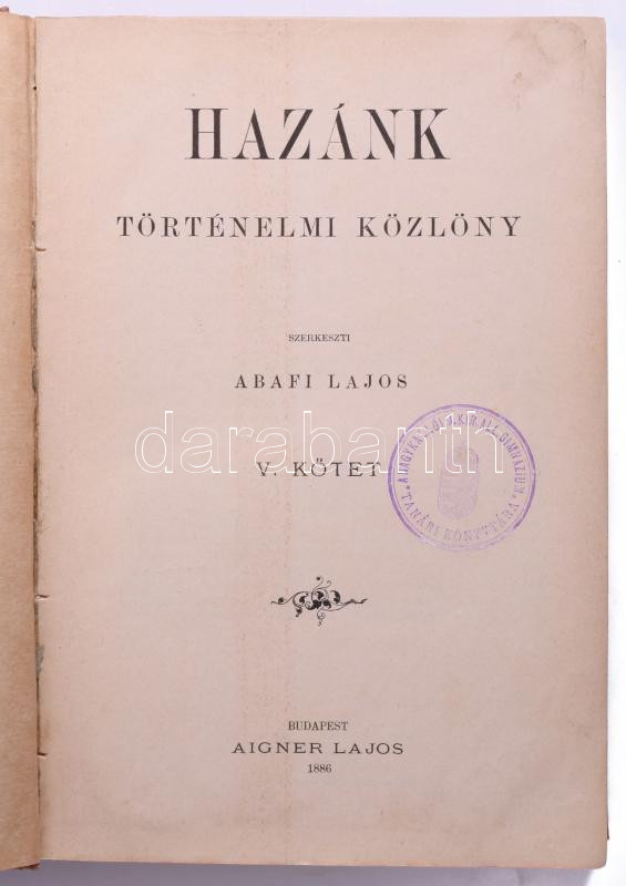 Abafi Lajos (szerk.): Hazánk - Történelmi közlöny V. kötet, 396p. Kiad... https://www.darabanth.com/hu/510-Gyorsarveres/510.0/Konyvek/Konyvek-Tortenelem~769/Abafi-Lajos-szerk-Hazank-Tortenelmi-kozlony-V-kotet-396p-Kiadoi-felvaszon-kotesb~II3452240