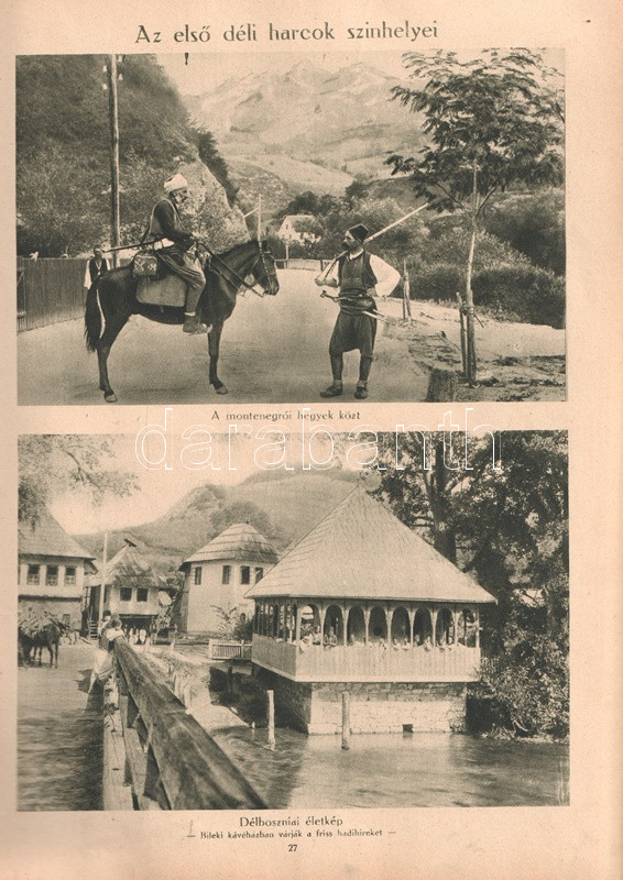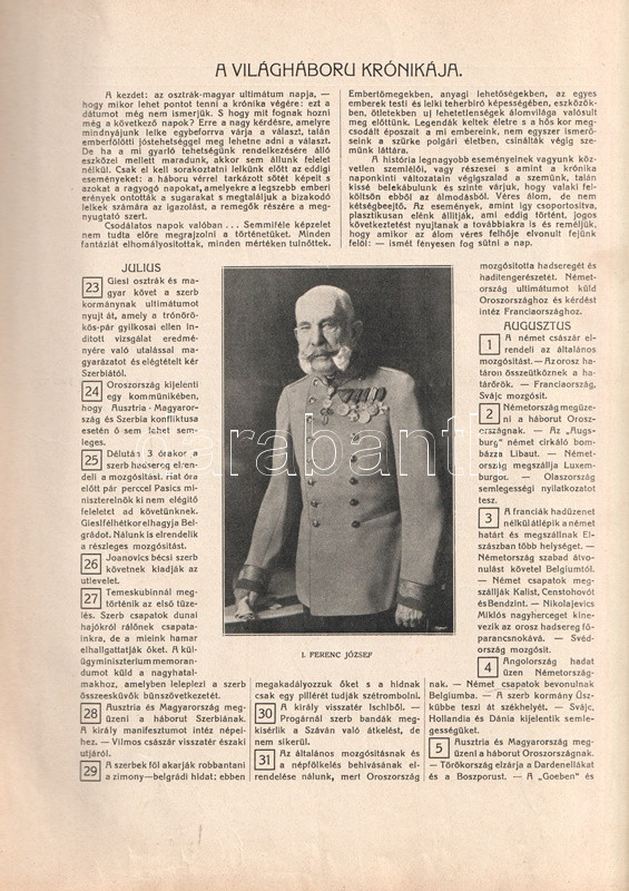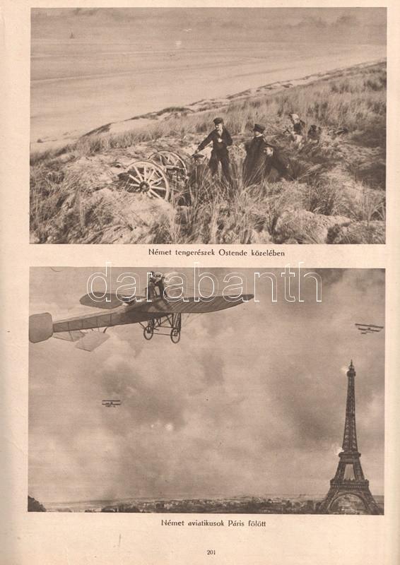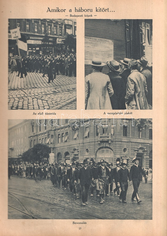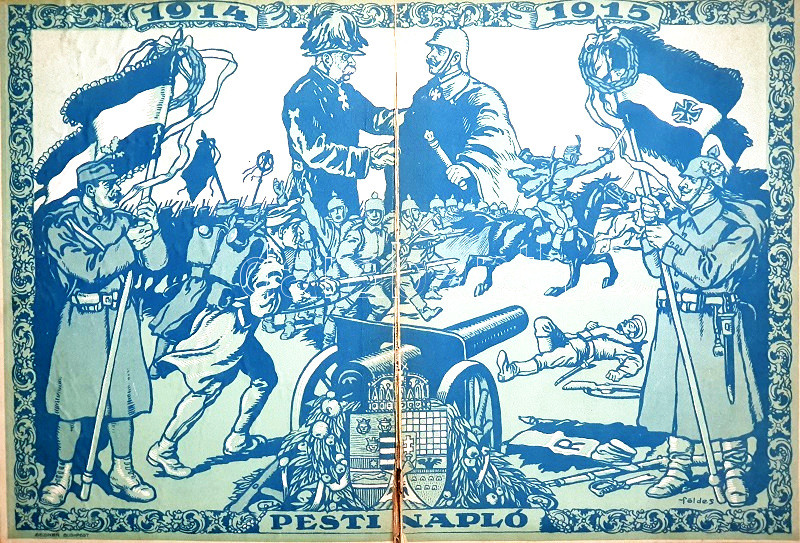Kiadási év nélkül megjelent, rendkívül gazdagon illusztrált háborús albumunk 1915 márciusáig követi nyomon a harctéri eseményeket, majd a 17. oldaltól a munka lényegét jelentő, gondosan megszűrt anyagú fotókollekció következik. Kiadványunk a háborús mozgósítás budapesti képeivel indít, majd a szerb és orosz front képanyagából válogat, bemutatja az ellenség galíciai rémtetteit, dokumentálja a tábori élet békésebb és tréfásabb pillanatait, kisebb válogatást mutat be a német szövetséges nyugati frontjáról, valamint a központi hatalmak haditechnikai újdonságaiból (légierő, monitor- és tengeralattjáró-flotta), elidőz a hátország közgyógyellátásának részletein, végül a török szövetséges hadait méltatja. A 225. oldaltól hadtechnikai cikkek. Az előzékeken Földes Imre dupla oldalas grafikája.