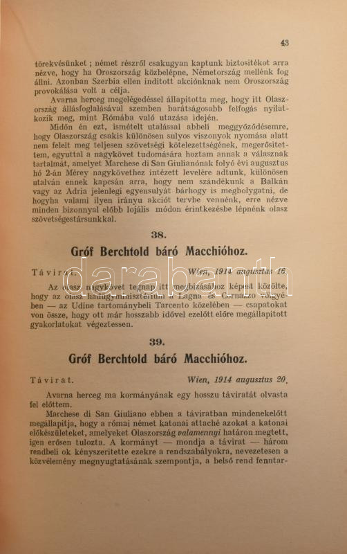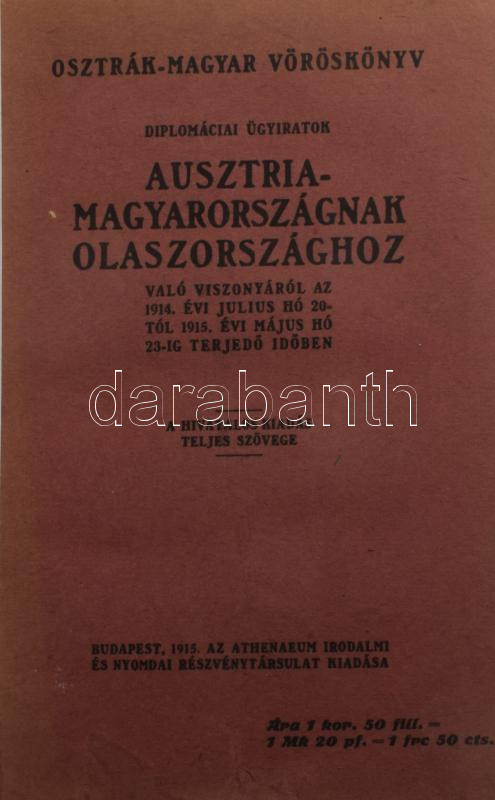 Osztrák-magyar vöröskönyv. Diplomáciai ügyiratok Ausztria-Magyarországnak Olaszországhoz való viszonyáról az 1914. évi julius hó 20-tól 1915. évi május hó 23-ikáig terjedő időben.