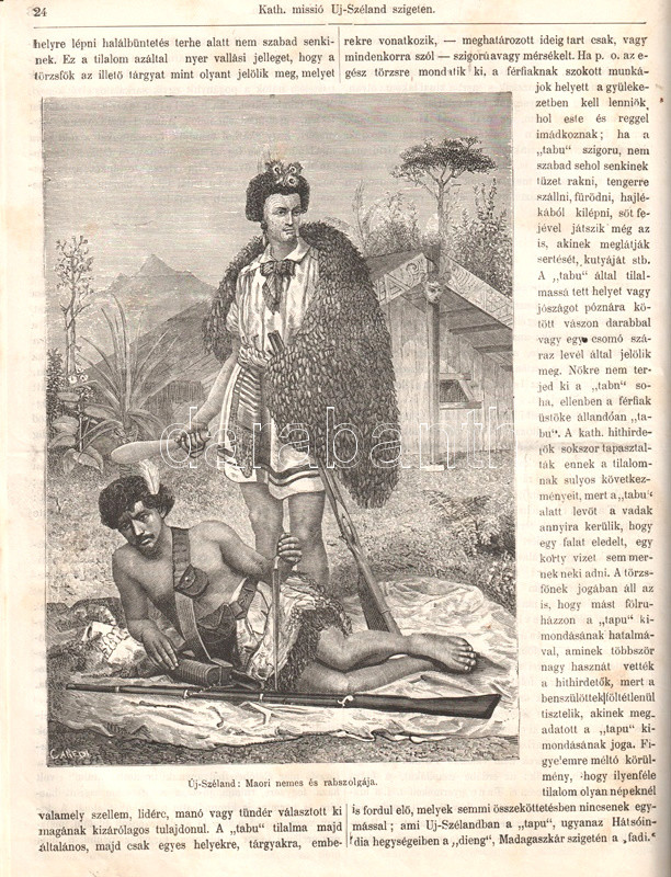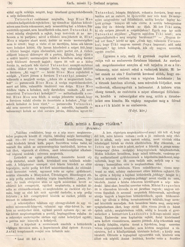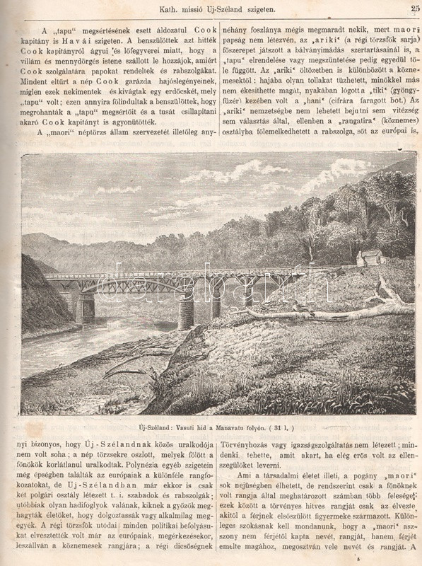 Nogely István (1839-1905) római katolikus pap, képzőintézeti igazgató, szentszéki ülnök gazdagon illusztrált, katolikus szellemiségű földrajzi ismeretterjesztő folyóirata a római katolikus missziók trópusi tevékenységének ismertetése kapcsán számtalan földrajzi és néprajzi érdekességet oszt meg. Lapszámokon át folytatódó beszámolót olvashatunk Új-Zéland maori népének életmódjáról, világnézetéről, szokásrendszeréről és hiedelemvilágáról, illetve az oda érkező katolikus hittérítők viszontagságairól, feladatairól és eredményeiről. Visszatérő téma még a hátsó-indiai, kongói és kínai misszió sorsa is. A képanyagon kívül naplórészletekkel is megtűzdelt kongói beszámoló markáns nézőpontból ecseteli a térítés előtt álló feketék koldulási hajlamait. A hittérítőket - mint a gyarmatosítók előfutárait - olykor fegyverekkel fogadják, lapszámunk a kínai, illetve dél-szudáni területeken fogságba került misszionáriusok sorsáért aggódik.