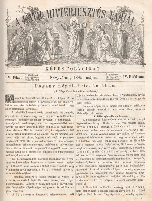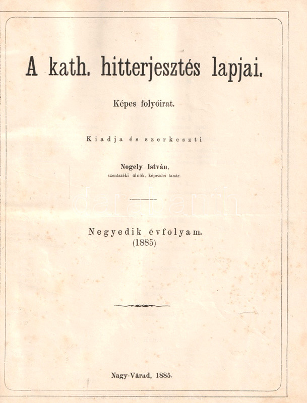 [Folyóirat] A Katholikus Hitterjesztés Lapjai. Képes folyóirat. Szerkeszti Nogely István. Megjelenik évenkint 10 füzetben. IV. évfolyam, 1-10. szám. (1885).