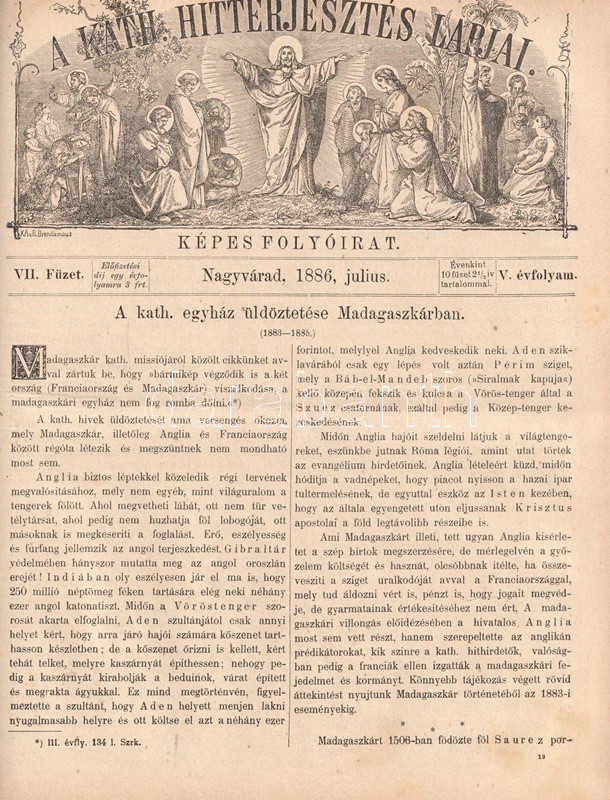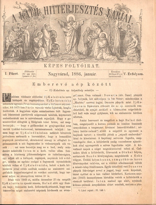 [Folyóirat] A Katholikus Hitterjesztés Lapjai. Képes folyóirat. Szerkeszti Nogely István. Megjelenik évenkint 10 füzetben. V. évfolyam, 1-10. szám. (1886).