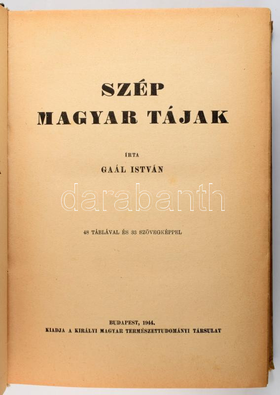 Gaál István: Szép magyar tájak. Budapest, 1944, Királyi Magyar Termész... https://www.darabanth.com/hu/510-Gyorsarveres/510.0/Konyvek/Konyvek-Utazas-helytortenet~766/Gaal-Istvan-Szep-magyar-tajak-Budapest-1944-Kiralyi-Magyar-Termeszettudomanyi-Tarsulat-~II3450806