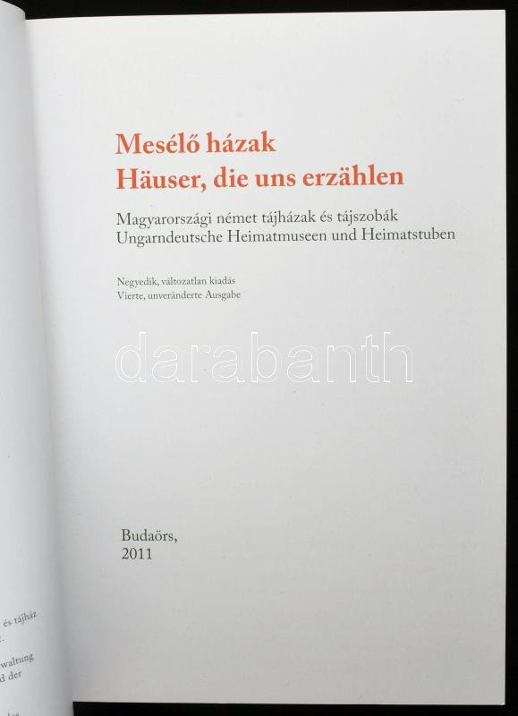 Mesélő házak. Häuserm, die uns erzählen. Magyarországi német tájházak és tájszobák. Ungarndeutsche Heimatmuseen und Heimatstuben. Szerk.: Jaszmann Gabriella. Budaörs, 2011., Helytörténeti Gyűjtemény - Heimatmuseum, 209+2 p. Magyar és német nyelven. Gazdag képanyaggal illusztrált. Kiadói papírkötés