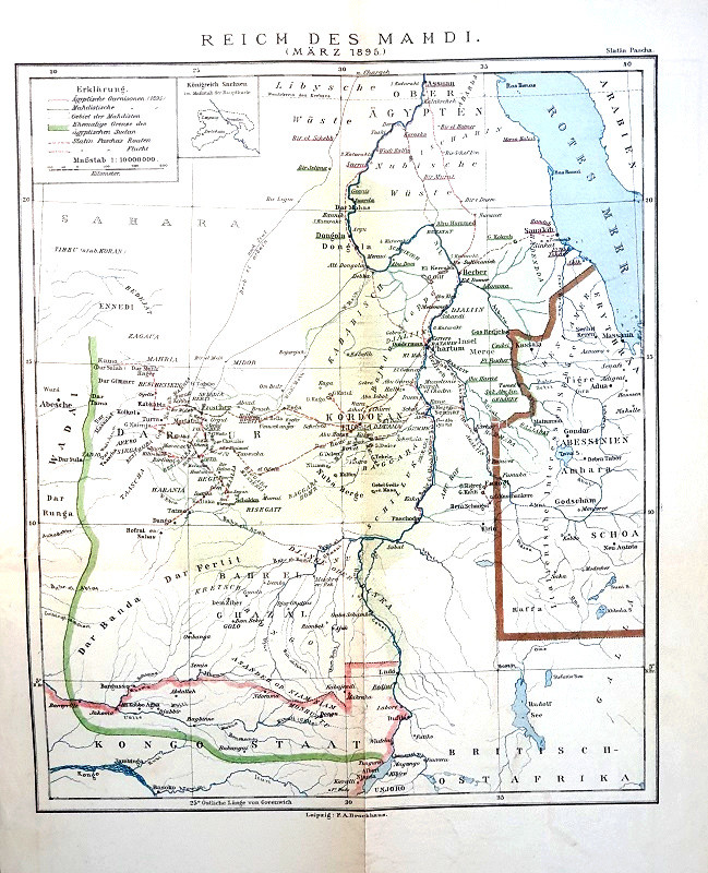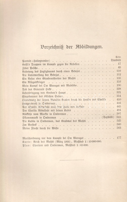 Slatin, Rudolf [Karl von]: Feuer und Schwert im Sudan. Meine Kämpfe mit den Derwischen, meine Gefangenschaft und Flucht 1879-1895. Von Rudolph Slatin Pascha. Mit einem Porträt, 19 Abbildungen von Talbot Kelly, einer Karte und einem Plan.