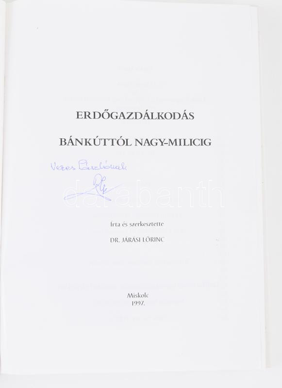 Dr. Járási Lőrinc: Erdőgazdálkodás Bánkúttól Nagy-Milicig. A szerző, Dr. Járási Lőrinc (1929-2014) által erdőmérnök, erdőfelügyelőségi igazgató által DEDIKÁLT példány. Miskolc, 1997, Észak-Magyarország Erdőgazdasági Rt., 373 p. Kiadói kartonált papírkötés, ceruzás aláhúzásokkal, bejelölésekkel és bejegyzésekkel.