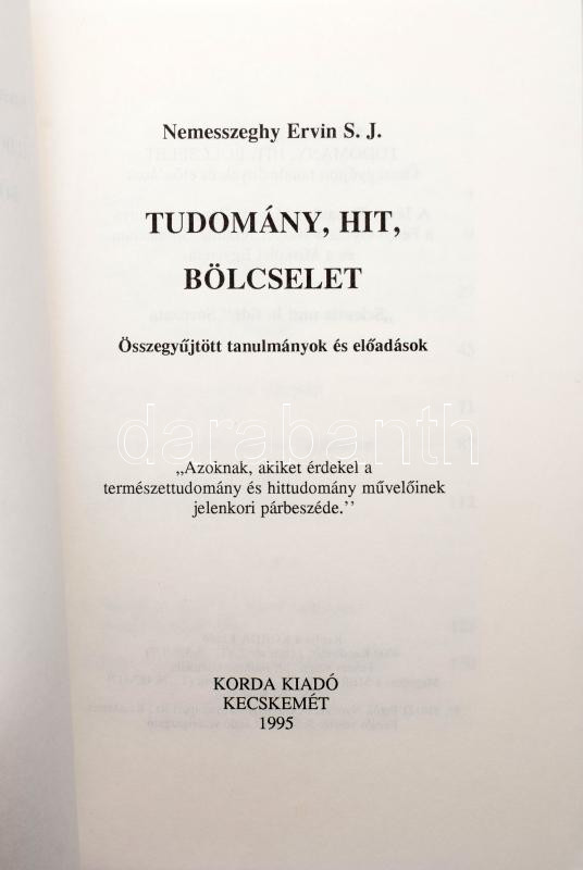 Nemesszeghy Ervin S. J.: Tudomány, hit, bölcselet. Összegyűjtött tanulmányok és előadások. Kecskemét, 1995, Korda Kiadó, 256 p. Magyar és angol nyelven. Kiadói papírkötés.