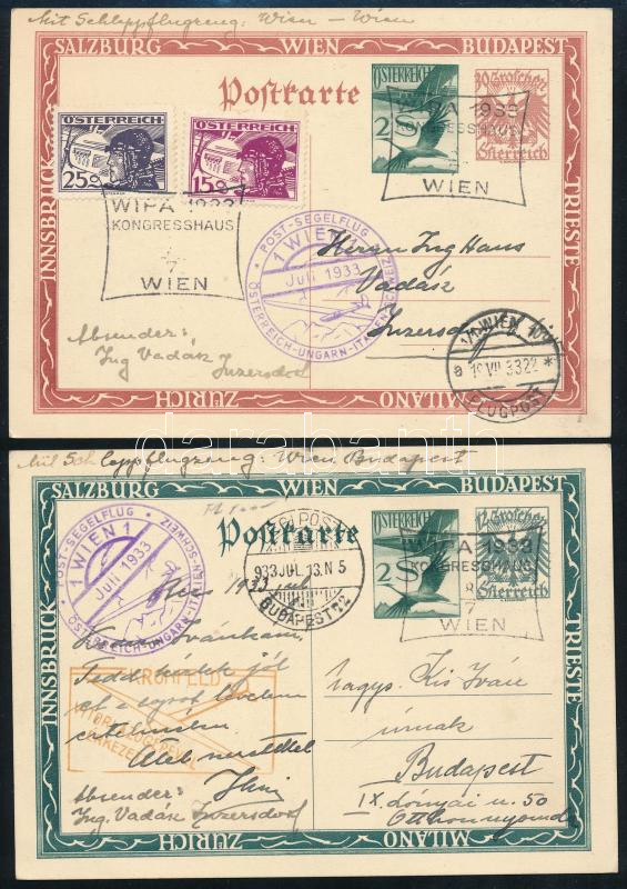 Leírás: 1933 WIPA 2 db légi díjjegyes levelezőlap Budapestre és Bécsbe küldve