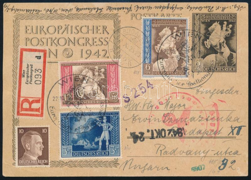 1942 Ajánlott, cenzúrázott levelezőlap Budapestre https://www.darabanth.com/hu/510-Gyorsarveres/510.0/Kulfoldi-filatelia-es-postatortenet/Deutsches-Reich~881/1942-Ajanlott-cenzurazott-levelezolap-Budapestre~II3405755