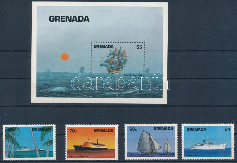 1984 Hajók sor + blokk Mi 1307-1310 + Mi 128 https://www.darabanth.com/hu/510-Gyorsarveres/510.0/Kulfoldi-filatelia-es-postatortenet/Grenada~916/1984-Hajok-sor-plus-blokk-Mi-1307-1310-plus-Mi-128~II3412316