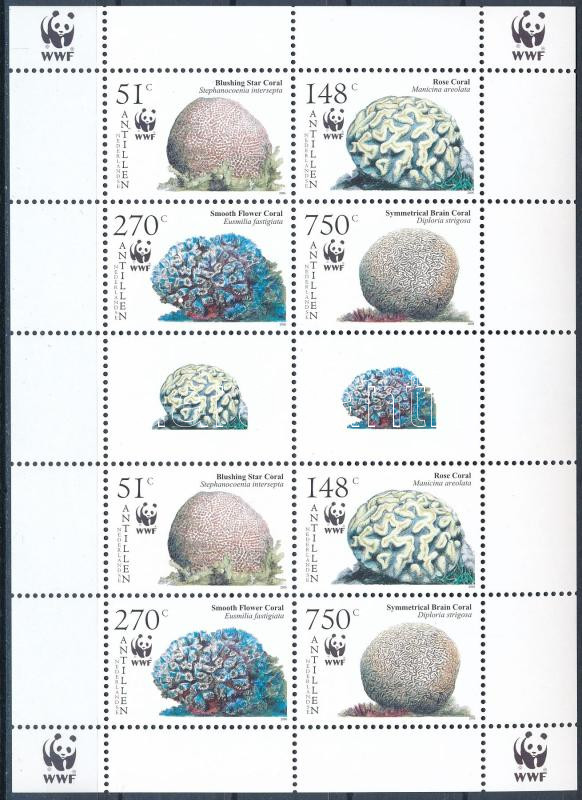 2005 WWF: Korallok ív, Coral sheetlet Mi 1401-1404 https://www.darabanth.com/hu/510-Gyorsarveres/510.0/Kulfoldi-filatelia-es-postatortenet/Holland-Antillak~924/2005-WWF-Korallok-iv-Coral-sheetlet-Mi-1401-1404~II3446533