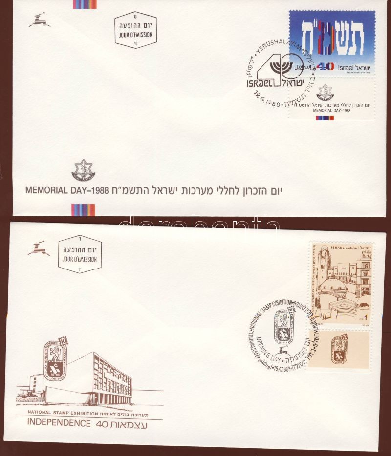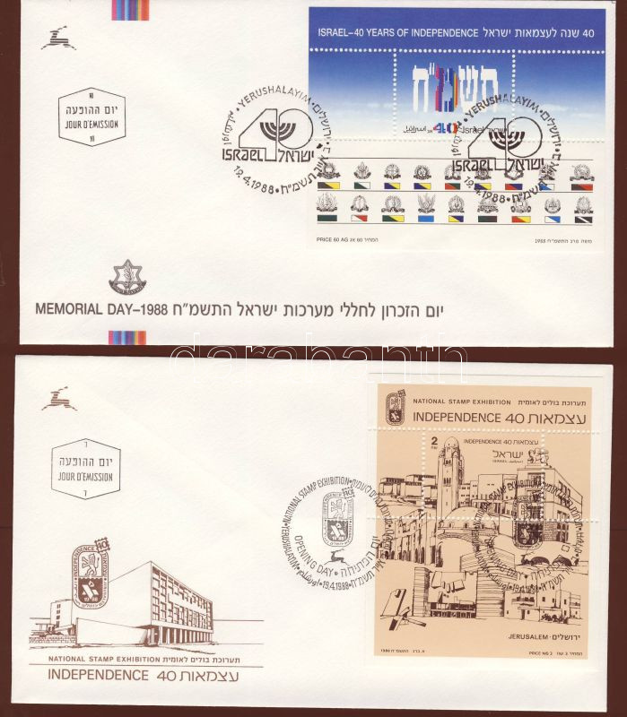 Leírás: 1988 40 éves Izrael Mi 1086+1088+blokk 36+37 FDC