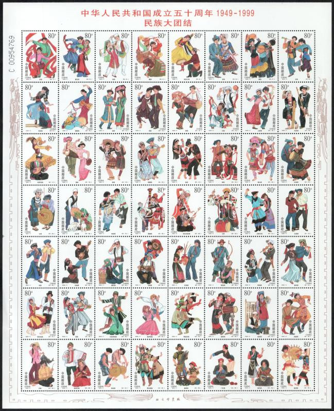 Leírás: 1999 50 éves a Kínai Népköztársaság teljes ív dísz tokban