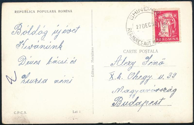Leírás: 1962 Képeslap GHINDARI REG. MURES AUT. MAGHIARA bélyegzéssel Makfalváról a Maros Magyar Autonóm Tartomány területén feladva