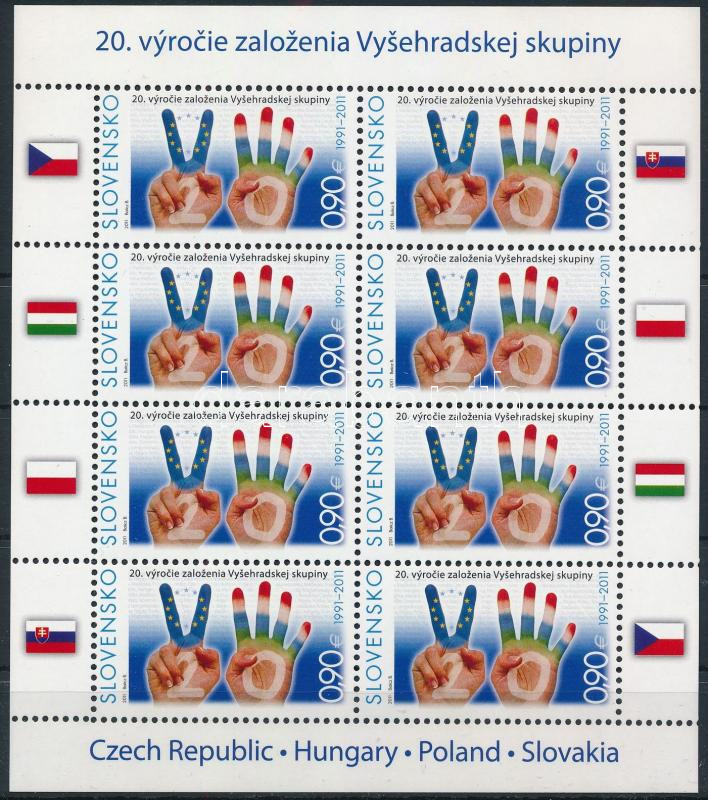 2011 A Visegrádi Csoport 20. évfordulója kisív Mi 654 https://www.darabanth.com/hu/510-Gyorsarveres/510.0/Kulfoldi-filatelia-es-postatortenet/Szlovakia~1066/2011-A-Visegradi-Csoport-20-evforduloja-kisiv-Mi-654~II3413102
