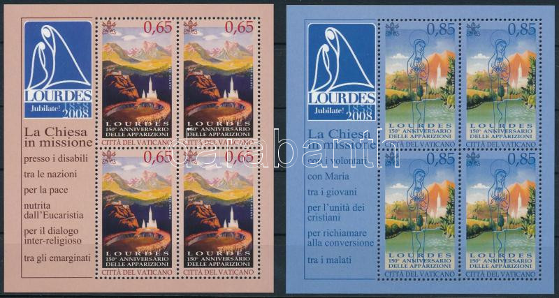 2008 Az első lourdes-i jelenések 150. évfordulója 2 db kisív sorban Mi... https://www.darabanth.com/hu/510-Gyorsarveres/510.0/Kulfoldi-filatelia-es-postatortenet/Vatikan~1098/2008-Az-elso-lourdes-i-jelenesek-150-evforduloja-2-db-kisiv-sorban-Mi-1611-1612~II3412226