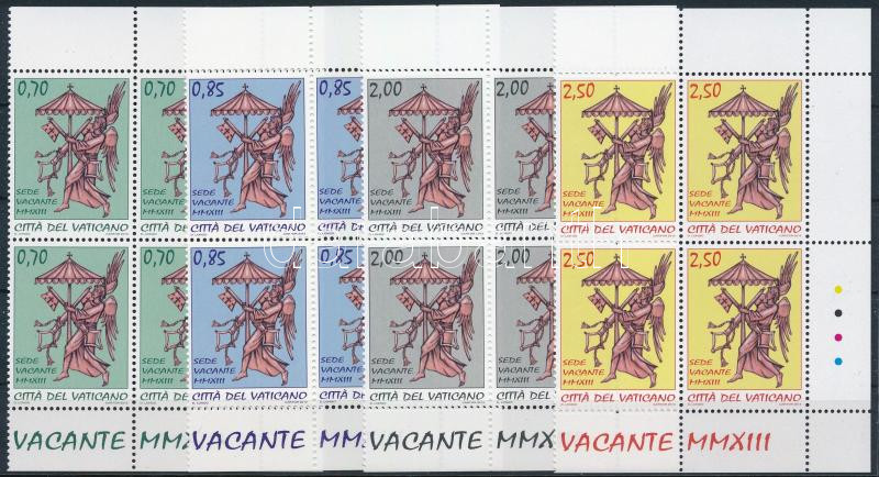 Leírás: 2013 XVI. Benedek pápa lemondása és utódjának megválasztása sor ívsarki négyestömbökben Mi 1762-1765
