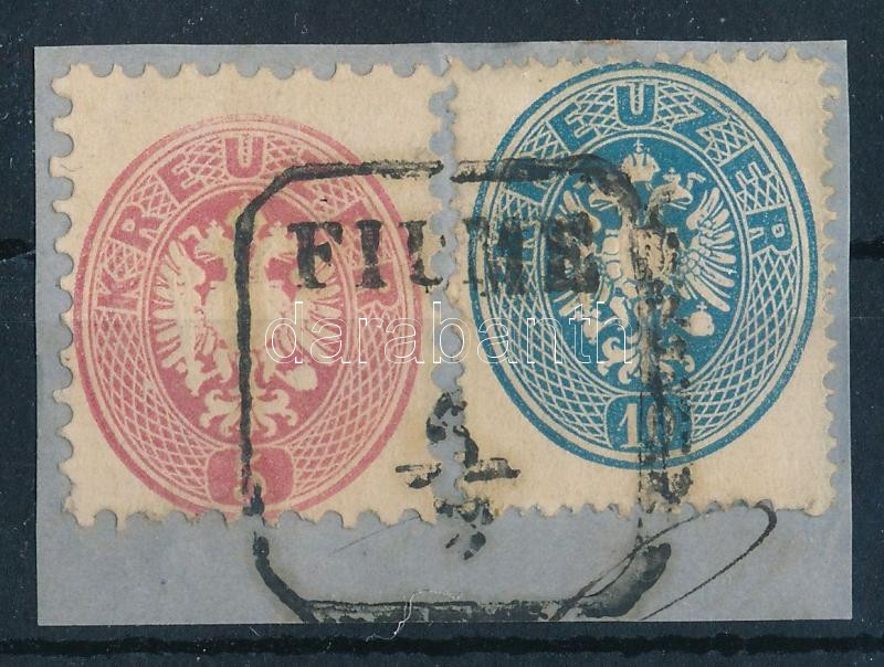 Leírás: 1863 10kr + 1864 5kr kivágáson "FIUME"
