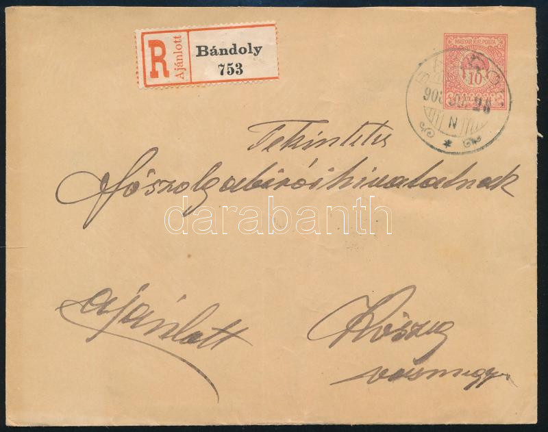 Leírás: 1908 10f díjjegyes boríték Turul 25f kiegészítéssel "BÁNDOLY" (Burgenland) - Köszegre