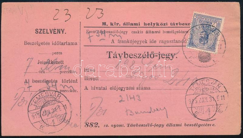 1915 Teljes távbeszélőjegy Turul 2K bérmentesítéssel "TEMESVÁR&qu... https://www.darabanth.com/hu/510-Gyorsarveres/510.0/Magyar-filatelia-es-postatortenet/1900-1919-kozotti-kiadasok~34/1915-Teljes-tavbeszelojegy-Turul-2K-bermentesitessel-TEMESVAR~II3271379