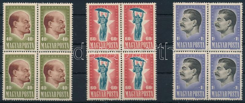 1947 Harmincéves a Szovjetunió sor 4-es tömbökben (14.000) https://www.darabanth.com/hu/510-Gyorsarveres/510.0/Magyar-filatelia-es-postatortenet/1946-1956-kozotti-kiadasok~52/1947-Harminceves-a-Szovjetunio-sor-4-es-tombokben-14000~II3450289