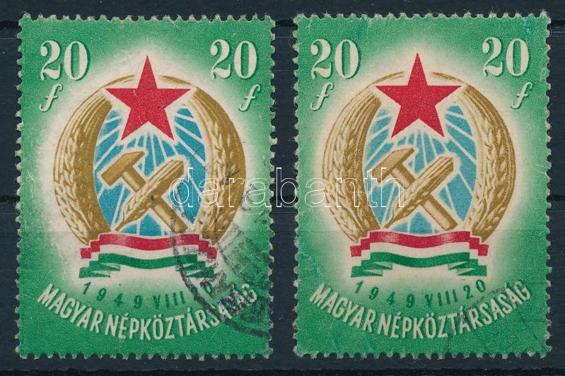 Leírás: 1949 Alkotmány (I.) 2 db 20f makkos vízjellel (12.000)