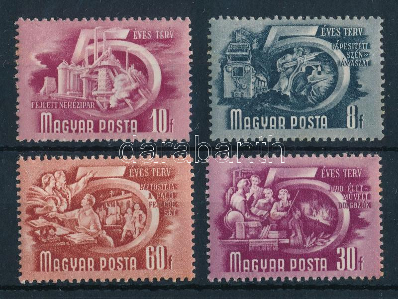 Leírás: 1951 Ötéves terv II. 4 bélyeg számvízjellel (30f, 60f rozsda / stain)