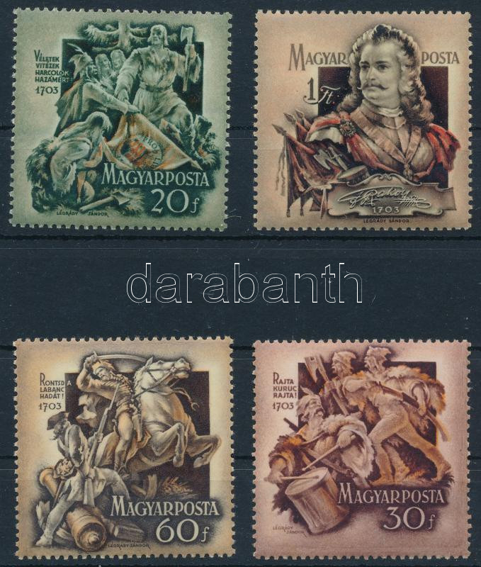 Leírás: 1953 II. Rákóczi Ferenc 4 klf bélyeg számvízjellel (30f rozsda / stain)
