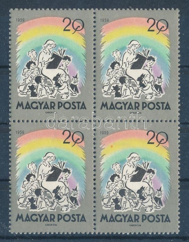 Leírás: 1959 Mese I. 20f négyestömb rózsaszín folt a szivárványban tévnyomattal (10.000)
