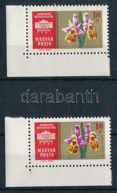 Leírás: 1961 Nemzetközi Bélyegkiállítás Budapest (II.) Arany 1,70Ft ívsarki bélyeg a lila szín elcsúszásával + támpéldány