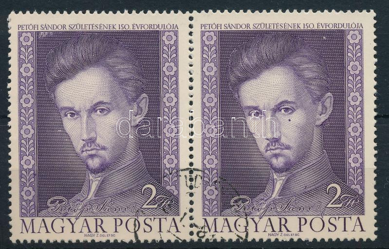 Leírás: 1972 Petőfi Sándor IV. 2Ft pár, az egyik bélyegen a szem alatt pont lemezhiba