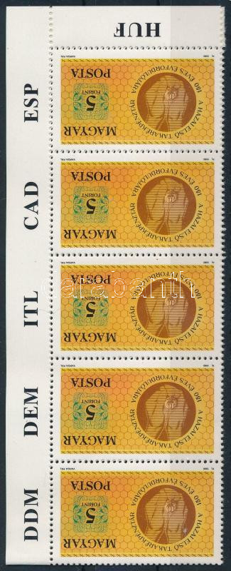 Leírás: 1990 150 éves a Takarékpénztári Mozgalom jobb ívsarki tízestömb, az ívszéleken külföldi pénznemek és "HUF" rövidítésekkel
